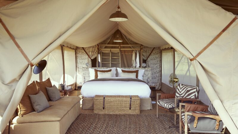 In shared luxury tents or villas